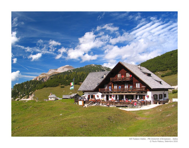 | Situado num belo prado alpino este refúgio tem excelentes condições. Seguimos agora o trilho 9. Passamos o lago de Rudo e começamos a rodear a croda Lavinores,a Croda Rossa uma presença constante. Percorremos aqui uma antiga estrada militar Austriaca um belo exemplo de engenharia da primeira grande guerra. A tempo o trilho mergulha em zig zags em direcção ao |
